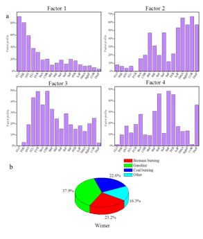 . 冬季样品中PMF源解析结果(a)因子分析;(b)各来源贡献率